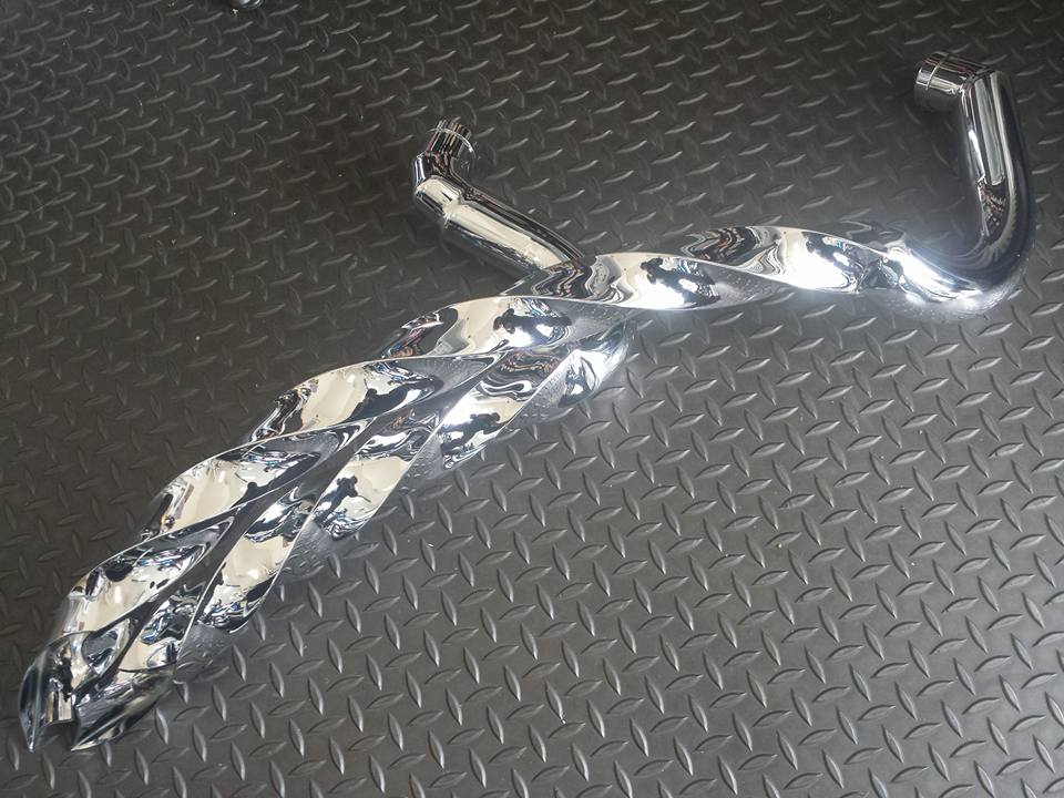 V-MONSTER ファーストのツイストマフラー~~EVに装着されました。ステンレス製 ポリッシュ 消音器装着!